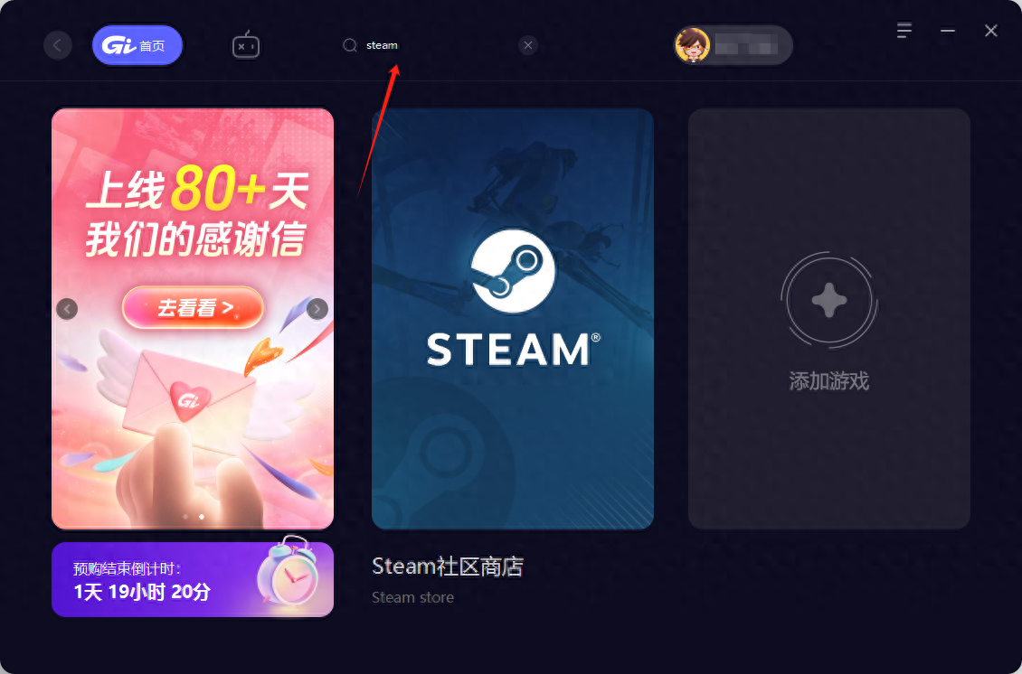 1.保持GI加速器仍在加速“steam社区商店”中