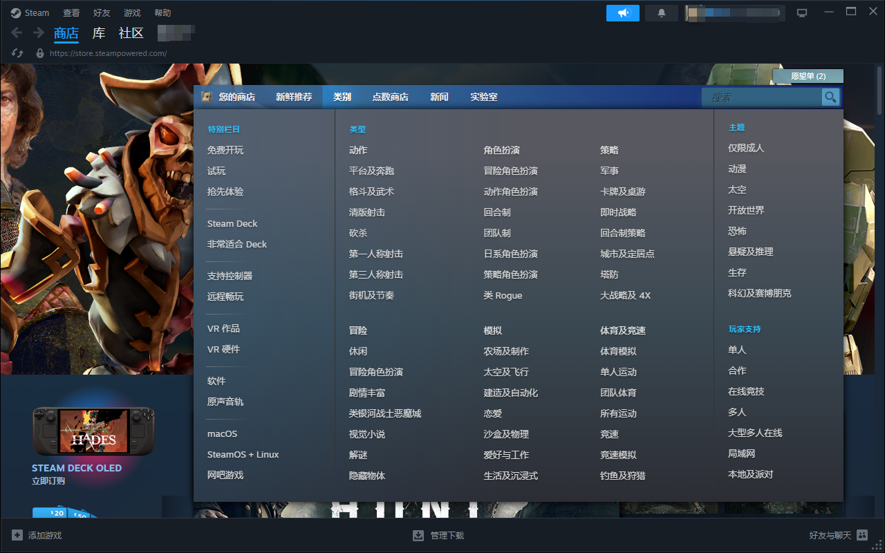 2.更新完成后,您将进入Steam客户端的主界面。
