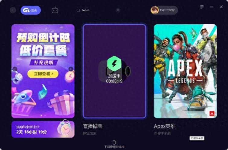 4.进入直播掉宝工具:在GI加速器的加速界面,您会看到一个名为“直播掉宝领取工具”的按钮位于界面右侧。轻触此按钮,即可直达APEX直播掉宝活动的专属界面。