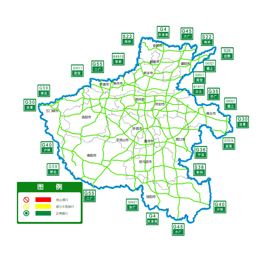 G59呼北高速全线、G5512晋新高速豫晋界-焦作西收费站、S22南林高速豫晋界-安阳开发区收费站全天禁止危险货物运输车辆通行。