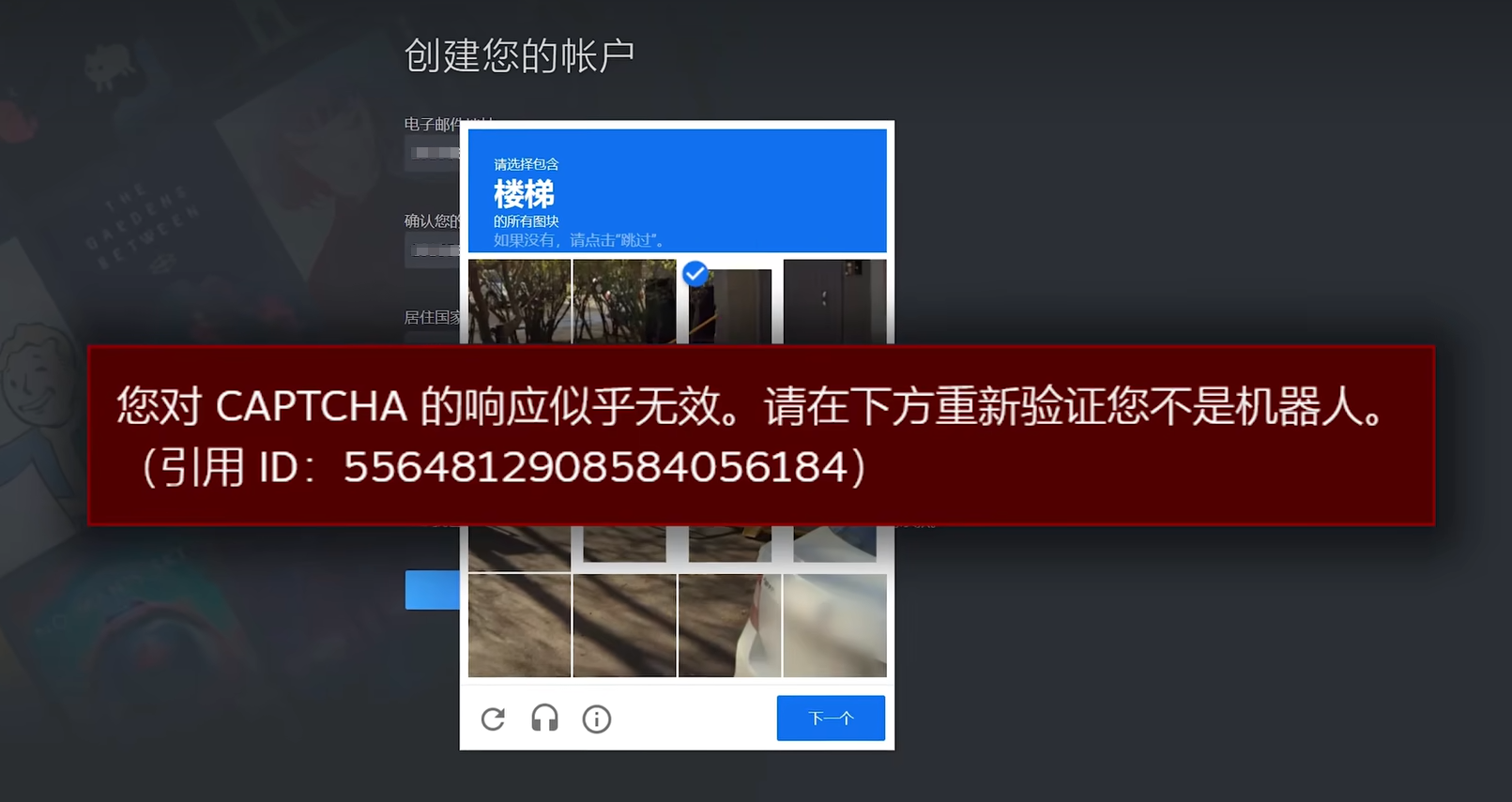 Steam账号注册教程,人机captcha服务器无响应解决办法