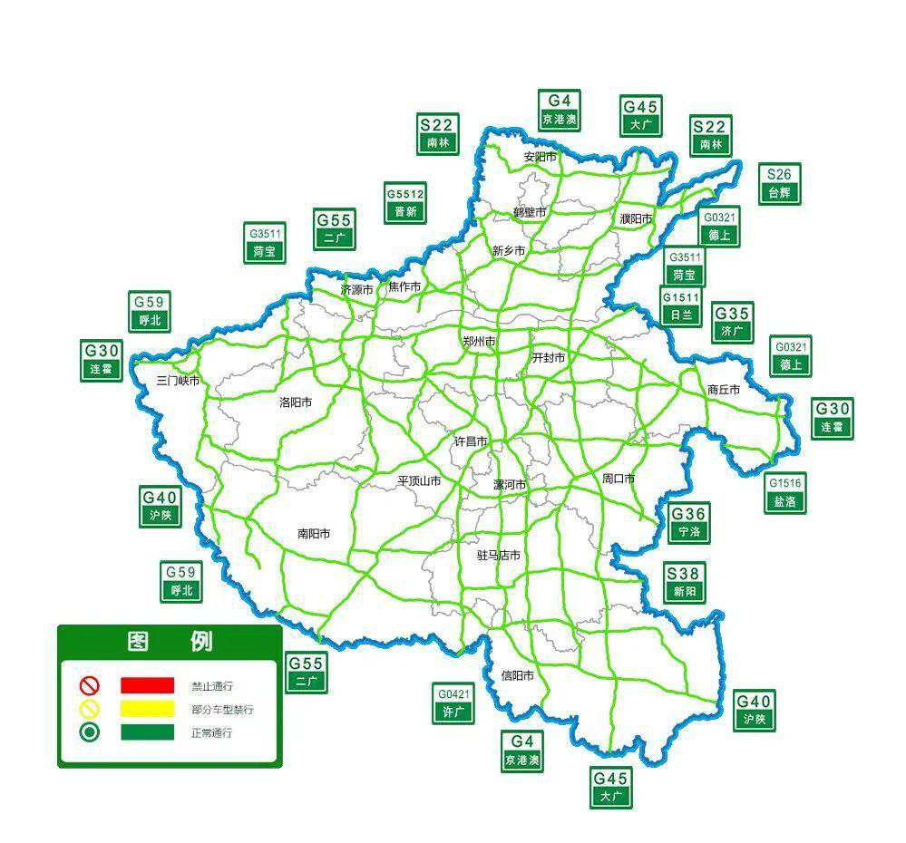 G59呼北高速全线、G5512晋新高速豫晋界-焦作西收费站、S22南林高速豫晋界-安阳开发区收费站全天禁止危险货物运输车辆通行。